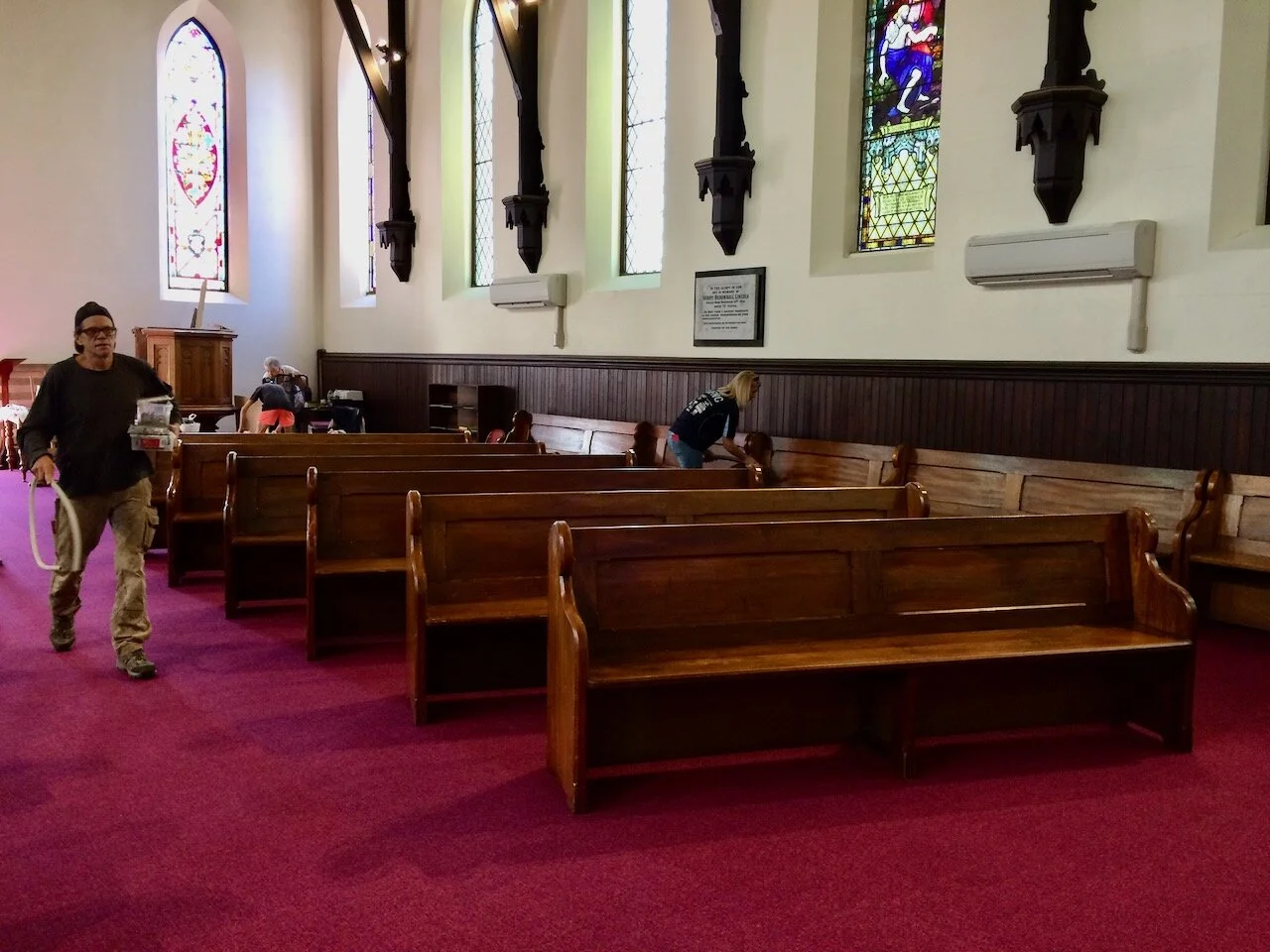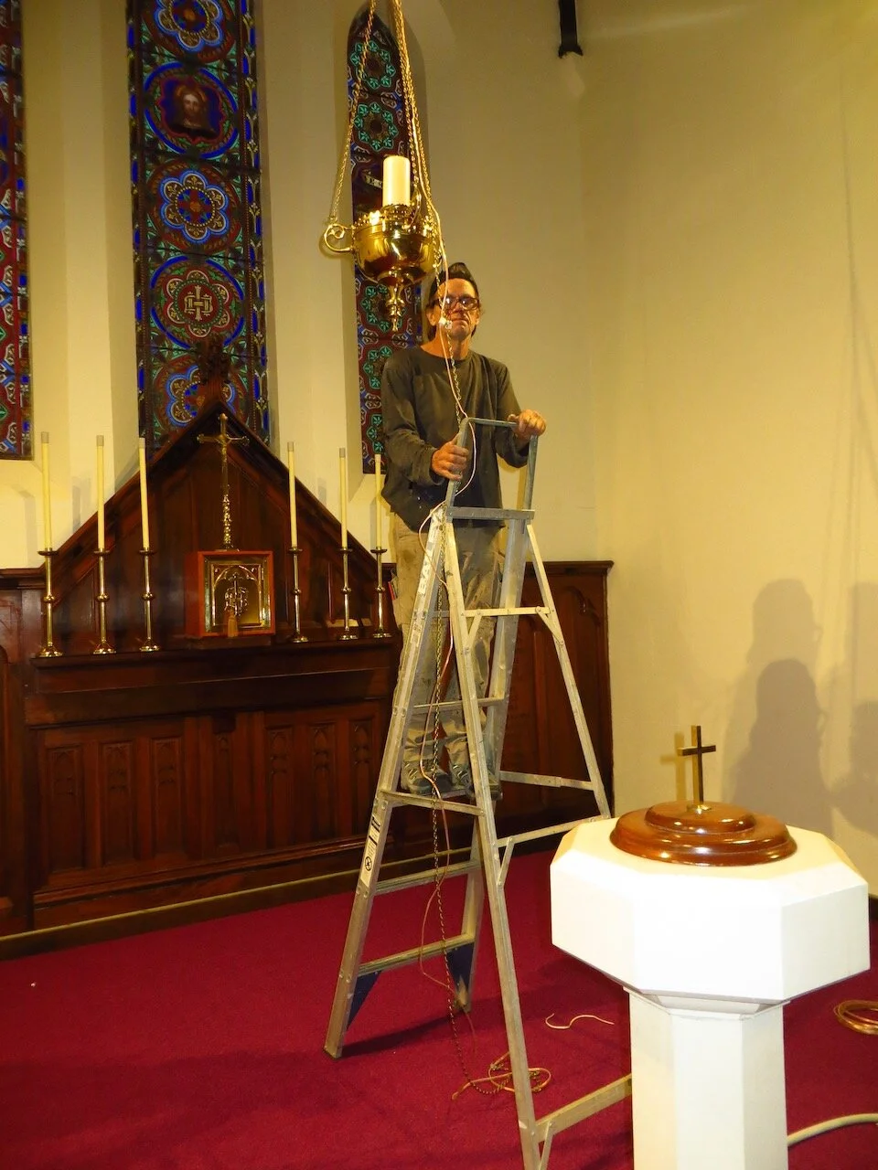 After nearly four months, the renovations at Christ Church were completed. Many hands helped get the church back to ‘normal’ with pews, the font, organ and other furniture being returned; a final dust, polish and vacuum and all ready for Palm Sunday.