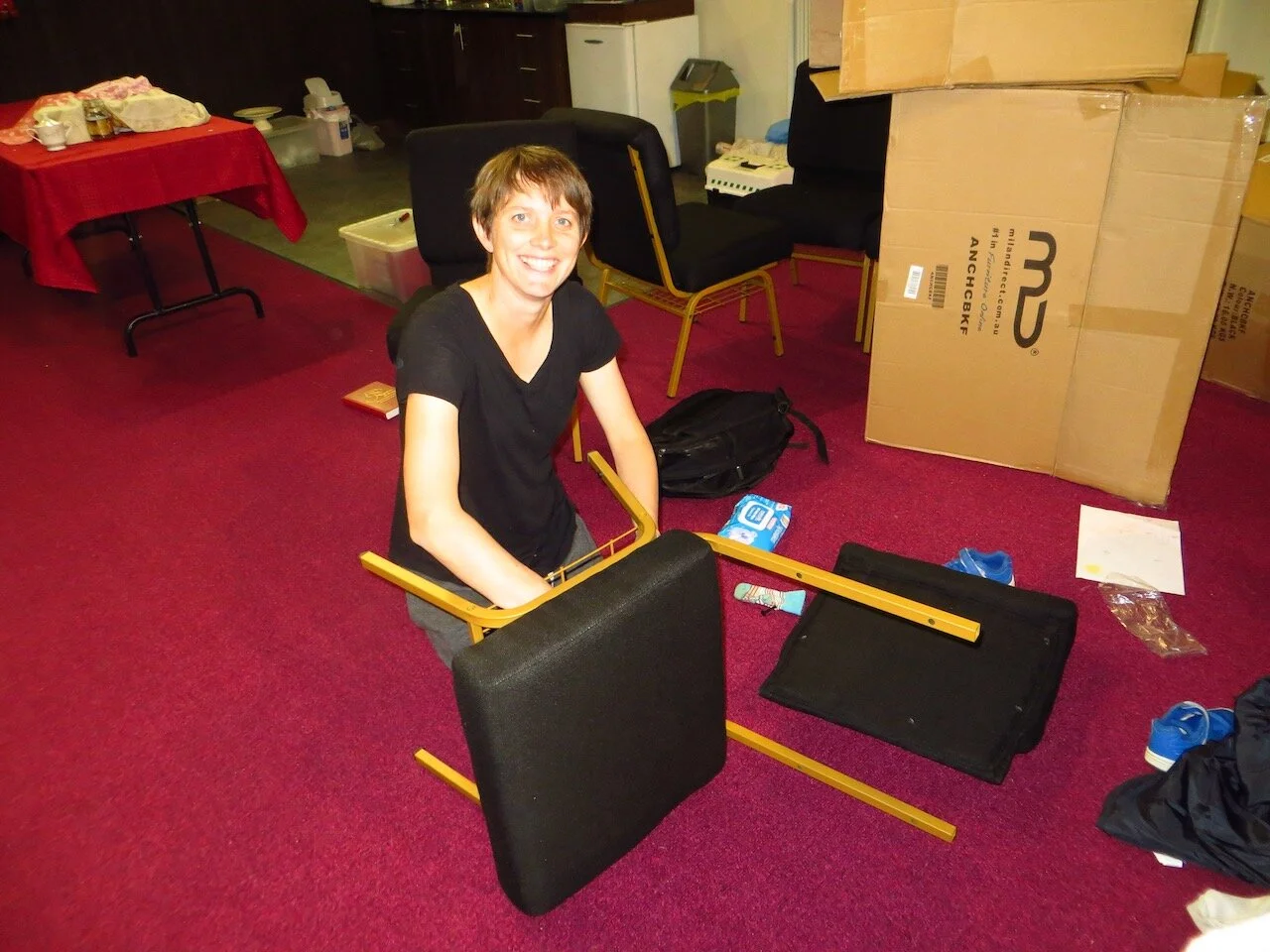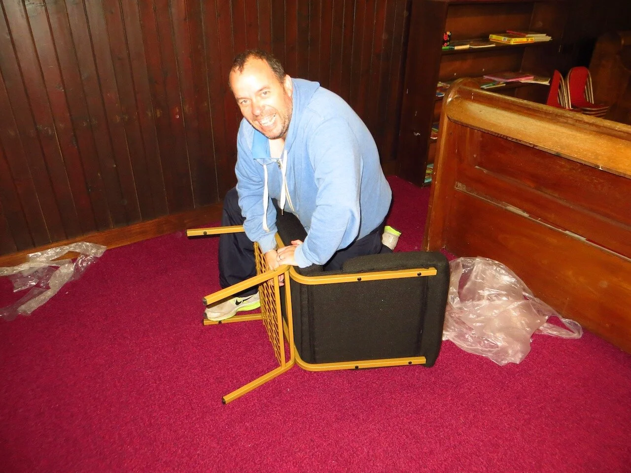 With the help of Sarah and Rob Elliott (and a big help from their children!) and church warden Caroline, the chairs were assembled in time for Easter.