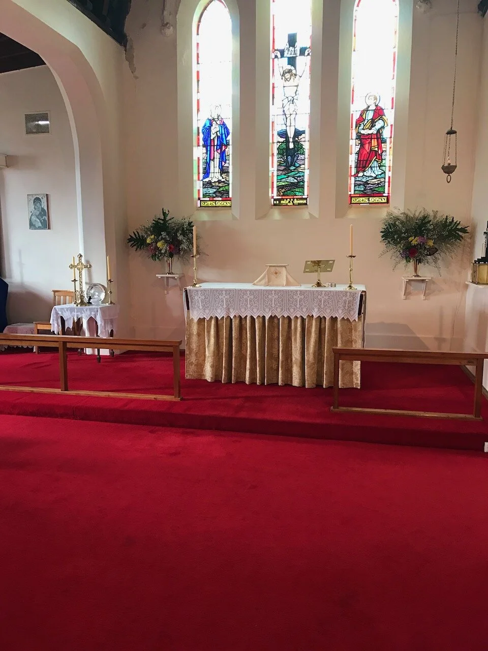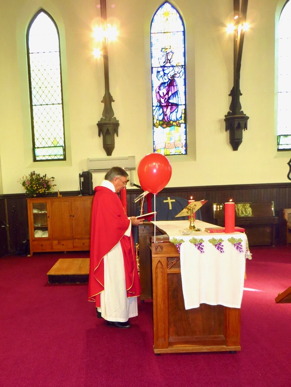 Our locum, Fr Paul Dalzell, had decorated the church with red balloons and streamers to welcome all on the Sunday morning.