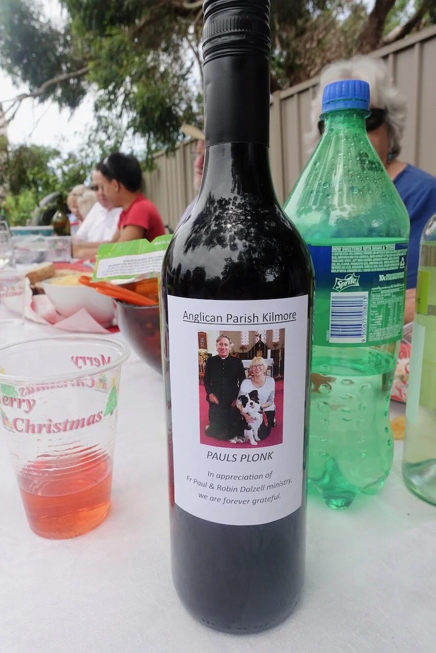 Wine from parishioner Ian Staring’s vineyard was personally labelled for Fr Paul and Robyn.