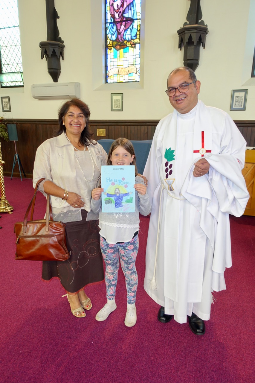 Pictured: Our welcomers - Doug and Anna; our children's corner; Dean preparing the candles before hand; Caroline singing the Easter anthem; Doug reading the first Lesson; Christ Church Music group sining "Hear the bells ringing" (this is found on our video page); Fr André and his serving team; Phoebe presenting Fr André and Patty with her Easter drawing 'He is Risen'.
