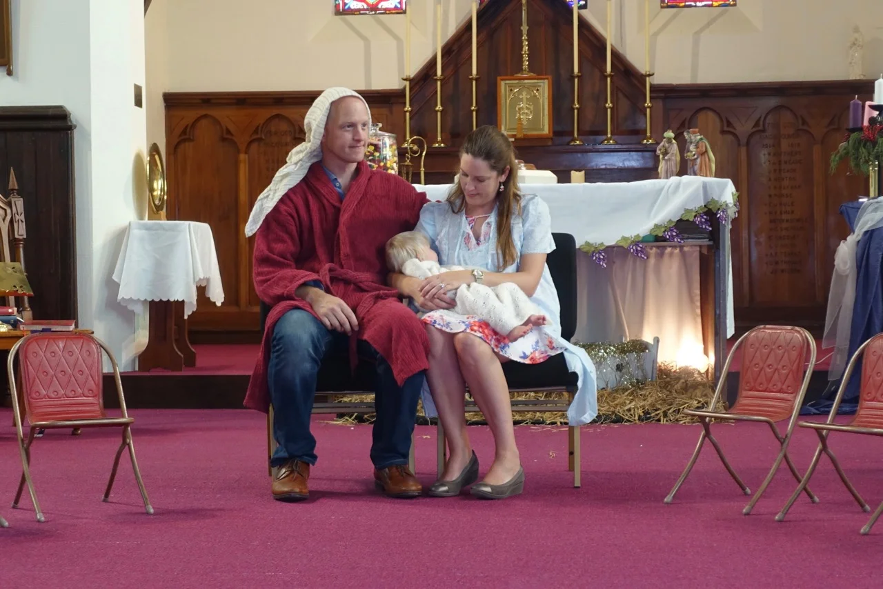 A wonderful all inclusive Nativity was acted out by most present with a ‘real’ baby Jesus who was Grace Davidson, baby daughter of past parishioner Sarah (Burge) and husband Paul, with her parents as Mary and Joseph. The wise men, shepherds and angels all volunteered from the congregation.