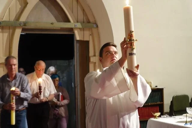 The Easter Eve ceremonies including the lighting of the new fire, the renewal of baptismal vows, and the blessing of the new Paschal Candles was held after sundown.