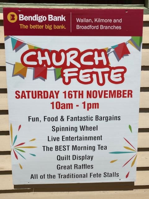 Our Parish Fete alternates each year between Kilmore and Broadford. This year the Fete was in the grounds of St Matthew’s, Broadford, with all the traditional stalls.