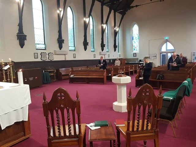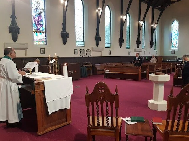 Photos below show the first service held at Christ Church on Sunday June 21st. Numbers were limited to only ten people with safe distancing between parishioners.