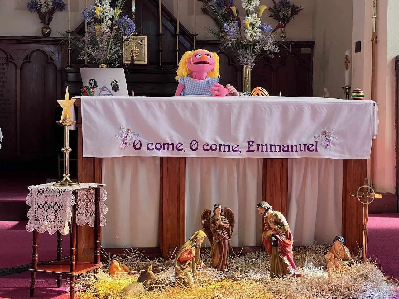 At Christ Church the preparations included flowers, the nativity crib, clean altar cloths, new candles, and Fr David getting his puppets ready for the Children’s Christmas Puppet Show.