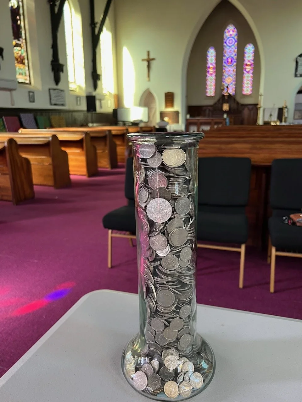 Following the Good Friday Liturgy, the local Fire Brigade stopped by the Church to pick up our annual donation of ‘loose change’ which is collected each year for the annual Good Friday Children’s Hospital Appeal. So lovely to see the jar completely full again.