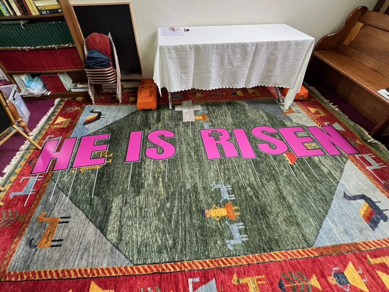 A busy Saturday at Christ Church with preparations for Easter. With thanks to Shirley, Sherine, Joy, Leanne, Douglas, Rod and Caroline who turned up to put our Church back to 'normal' after Good Friday, and for dusting, vacuuming, tidying and flower arranging.