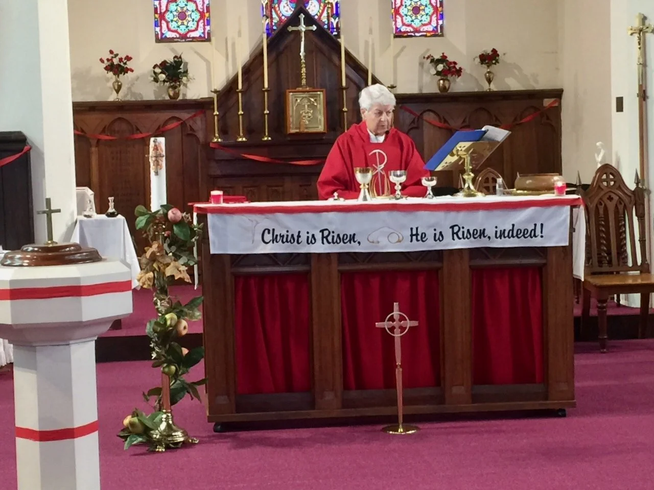 Once again the parish tradition continued of wearing red to church for the Feast of Pentecost on Sunday 8th June. With the parish Locum, the Rev'd Dr Helen Malcolm saying Mass, Christ Church was decorated throughout with red streamers, flowers and decorations.