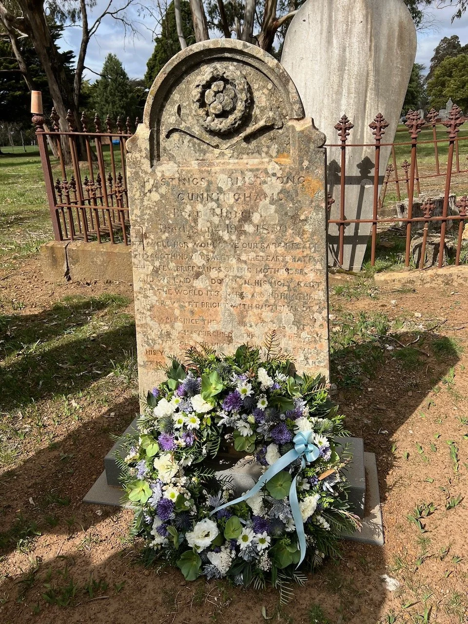 On 12th April 1850, Robert Hoddle, the Surveyor-in-Charge of the Port Phillip District wrote to the Colonial Secretary setting out a plan for a public cemetery in Kilmore, the oldest inland town in Victoria. At one hundred and seventy-five years, Kilmore Public Cemetery is one of the oldest Victorian cemeteries that has operated continuously since its foundation. As part of the 175th anniversary, on Saturday 20th September, the Kilmore Cemetery Trust unveiled the newly restored oldest headstone in the cemetery. Parishioners and community members were invited along to the occasion.