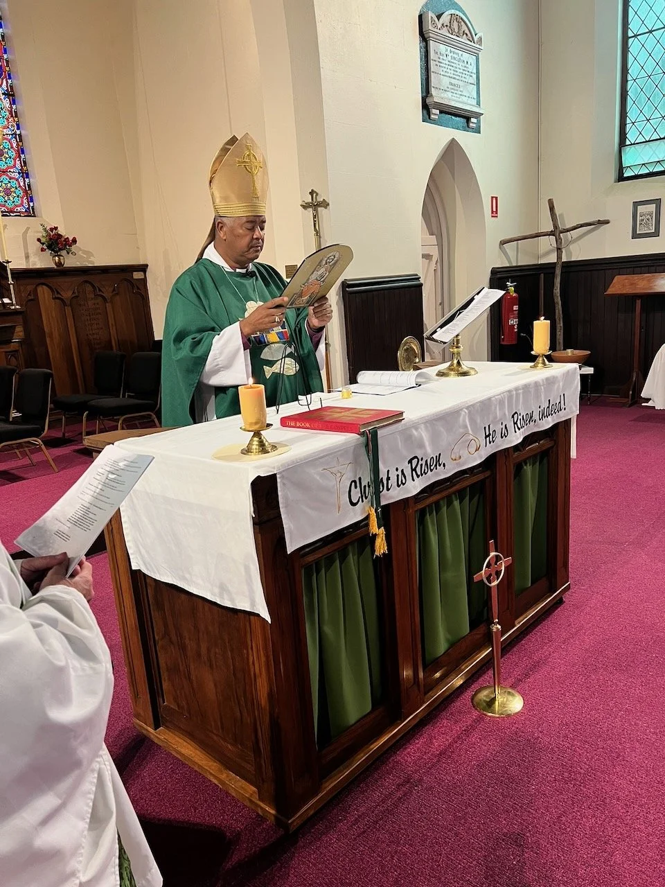 Sunday 26th October was wet and cold, but a warm welcome at Christ Church, Kilmore for Bishop Clarence and Michelle, and Bishop's Chaplain Rev Lesley Lewis. Bishop Clarence blessed a new Icon of Christ the King donated by Fr John Young, at the start of Mass, and at the conclusion of the service, he chaired the Parish Annual Meeting. It was wonderful that all four centres were represented and all positions for the roles of Parish Councillors, Wardens, Nominators and Synod Reps were filled. With huge thanks to all who stood for office for the next three years, and a big thank you to Bishop Clarence for being with us.