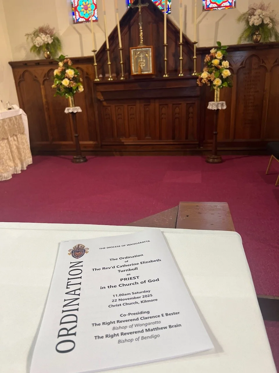 What an occasion. How proud we were in the Parish to host the Ordination to the Priesthood of Rev Catherine Elizabeth Turnbull. With nearly 100 in attendance, including two Bishops (Bishop Matt Brain from Bendigo, and our own Bishop Clarence); many clergy from our own Diocese as well as the Diocese of Melbourne and Diocese of Bendigo; parishioners, and family and friends of Rev Cathy. The church was full; the music joyful and a wonderful memorable occasion.