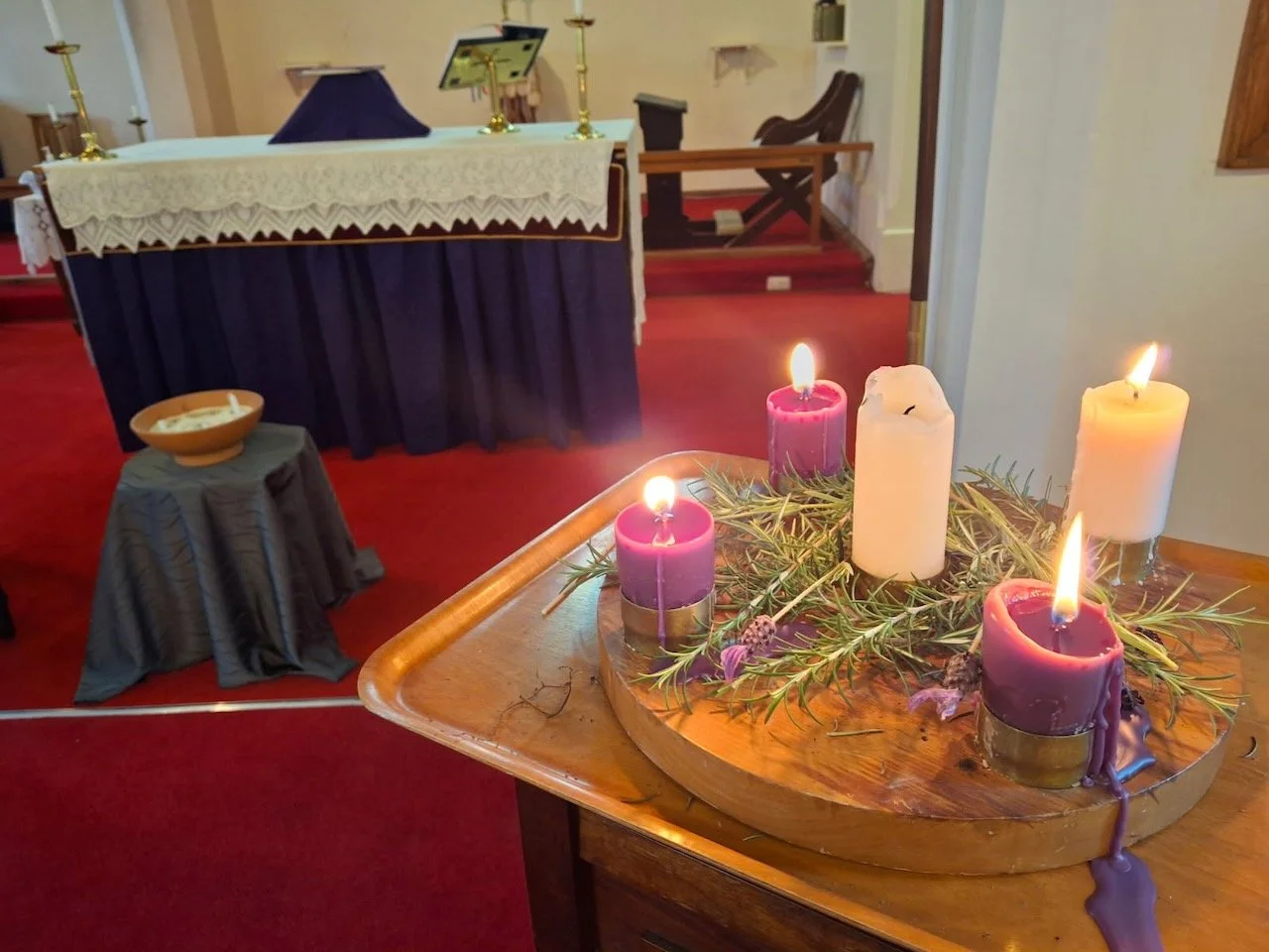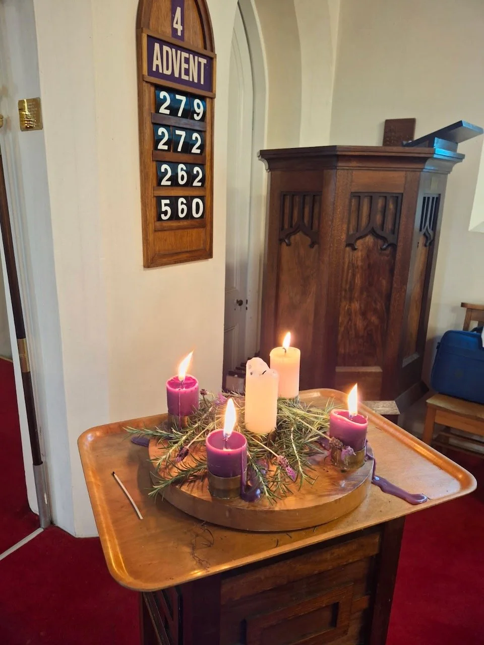 Advent 4 - The Advent Candle of LOVE. Our Advent Wreaths this week come to us from St Matthew's, Broadford, and Christ Church, Kilmore where all four of the coloured candles were lit, leaving just the Christ Candle for Christmas.